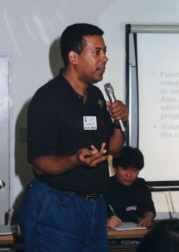 アメリカのアマチュア無線事情について語るDewayne氏 (後ろは通訳の村田氏)